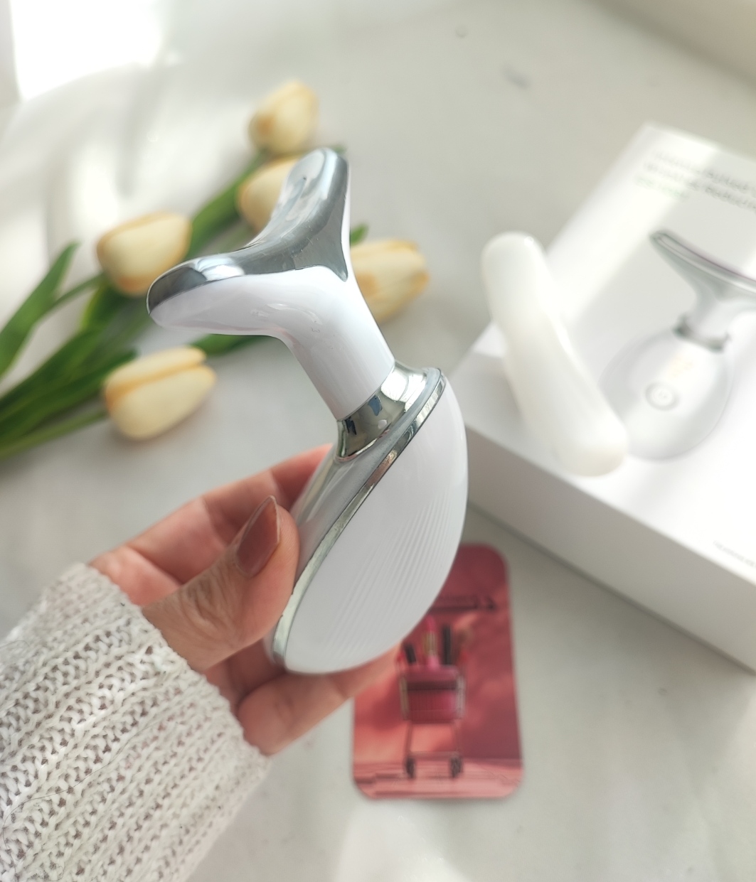 ماساژور ضد چروک صورت و گردن تیروس طراحی شده در جهت لیفت صورت و گردن، که برای جوانسازی پوست صورت و گردن به کار میرود و تاثیر چشمگیری در مدت کوتاه دارد. اولا حالت ماساژور که میتواند در لایههای عمیق پوست جایی که کلاژن الاستین شکل میگیرند موثر باشد و فرایند جوانسازی طبیعی پوست را سرعت دهد که نتیجهی این فرایند پوستی شفاف و جوانتر است. و از سوی این دستگاه به گونه ای است که میتواند به راحتی برای مناطق پوست صورت مورد استفاده قرار بگیرد. این دستگاه چندمنظوره دارای نورها بر اساس تکنولوژی های جدید نوری است که میتواند لکه را کم کند، به پوست حالت ارتجاعی دهد. قرمزی و کم و مک را رفع کند و چربی پوست را تنظیم نماید همچنین در کاهش اثرات زخم روی پوست و رفع خطوط و رفع خستگی پوست صورت و گردن بسیار موثر است. طراحی شده با سر ماساژ خمیده که به راحتی با منحنی صورت و بدن شما متناسب است – دستگاه هوشمند و کم مصرف به طور خودکار هنگامی که سر دستگاه با پوست تماس پیدا می کند شروع به کار می کند.