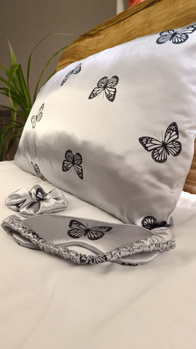 ست خواب روبالشتی ساتن ال ایکس طوسی پروانه